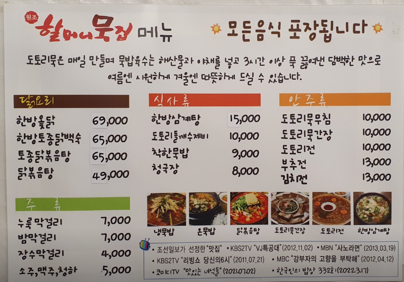 할머니 묵집에서 묵과 닭볶음탕으로 몸보신하고 건강한 생활 하세요.